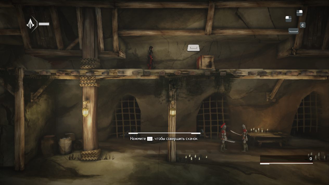 Показывайте настоящие чудеса восточных единоборств, помноженные на скрытный, шпионский стиль ассасинов (бесшумных убийц). Попробуйте не только не показываться на глаза охранникам, передвигаясь незаметно для них, но и убивать их, так чтобы остальные не подняли тревогу. Игроки сами прокладывают маршруты в рамках каждого из уровней. Формат игры не предполагает полное погружение в исторические соответствия и атмосферу окружающего мира – скорее это забег на спринтерскую дистанцию. Главными способностями являются – классический «прыжок веры», «орлиный глаз», благодаря которому вы можете наблюдать за врагами сквозь стены и преграды, чтобы предугадать их действия на несколько шагов вперёд, и «игра в прятки в толпе», позволяющая затеряться среди вражеских NPC.