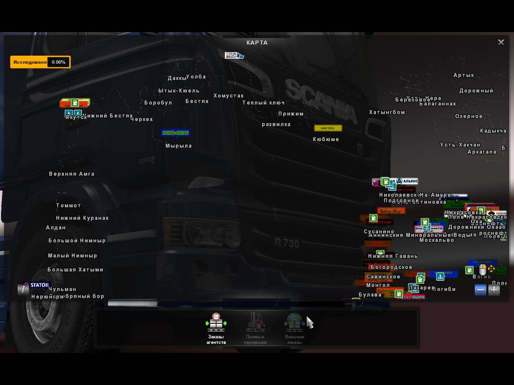 - Выберите маршрутизацию и карту в Euro Truck Simulator 2 Россия, скачав через торрент на нашем сайте. Сами стройте маршрут и пункты доставки.
