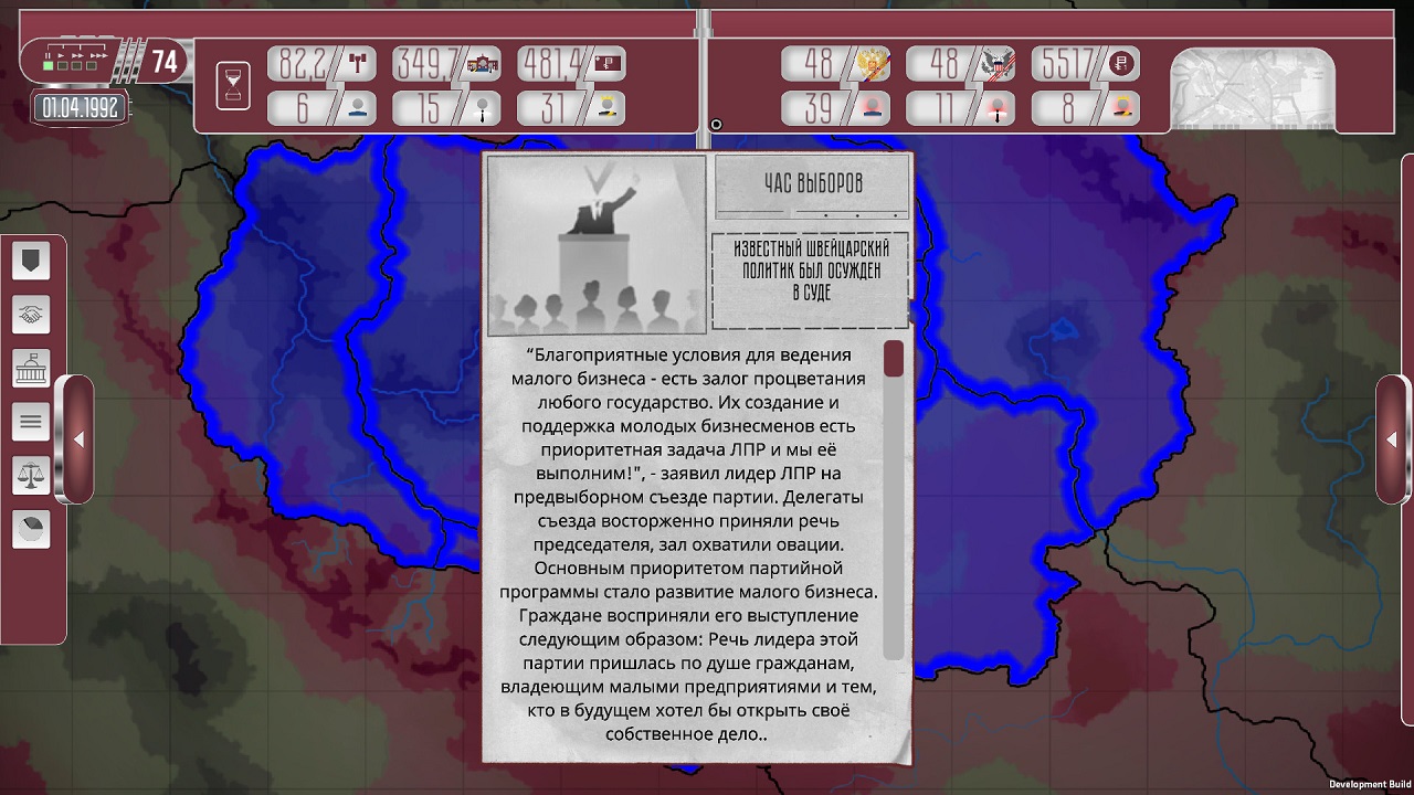Сегодня вам предлагается интересный инди-игровой проект под названием Collapse political simulator, создателем которого стала Kremlingames. Все происходит в жанре в направлении стратегического симулятора, где события развиваются в 1992-2004 годах. вам предстоит сыграть за лидера партии до того, как советское государство поглотит глобальный кризис и попытается возродить не только свои собственные политические устремления, но и чужие. Чтобы проверить себя в этой роли, хватит ли у вас сил для выполнения такого сложного и ответственного государственного дела, посетите магазин игр. Действие игры разворачивается между 1992 и 2004 годами. Советский Союз распался, и теперь вы оказываетесь в стране, которая находится в руинах, пытаясь выжить в масштабах Europe. Вы являетесь членом партии, находящейся в оппозиции, и теперь вам абсолютно необходимо подняться на вершину власти, занять важный пост и попытаться привести страну к процветанию. Но это не так просто. Сначала вы должны упорно трудиться, принять более дюжины самых важных судьбоносных решений и сделать многое, многое другое.