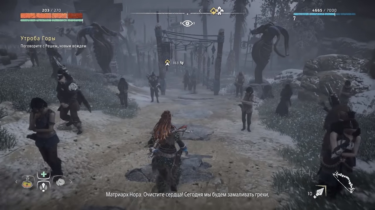 Horizon Zero Dawn - культовый и популярный сторонний приключенческий проект, который уже несколько лет доступен исключительно для PlayStation 4. Игра рассказывает о столкновении людей и роботов, которые вынуждены появляться бок о бок и бороться за выживание. Эта игра дает вам возможность перейти к роли молодой девушки Элой, которая обнаружила особую технику, которую пожилые люди использовали в своих приключениях, и которая теперь может использовать ее для защиты людей. С помощью этого древнего предмета героиня может управлять каким-то роботизированным животным, а мощный лук всегда может помочь ей сразиться с монстрами и другими племенами. В арсенале главного героя есть лук с разными типами стрел, в том числе взрывающиеся и горящие пули, бомбы, занавески и т. Д. Элой использует уникальное устройство - гранатомет, который позволяет ему замедлять движение противника с помощью кабелей. Уничтожая локации роботов, героиня собирает из своих тел детали и механизмы, чтобы создавать различные предметы и улучшения. Охотясь на обычных животных, Алой может использовать шкуры и кости для изготовления лекарств, ловушек, шейкеров и сумок.