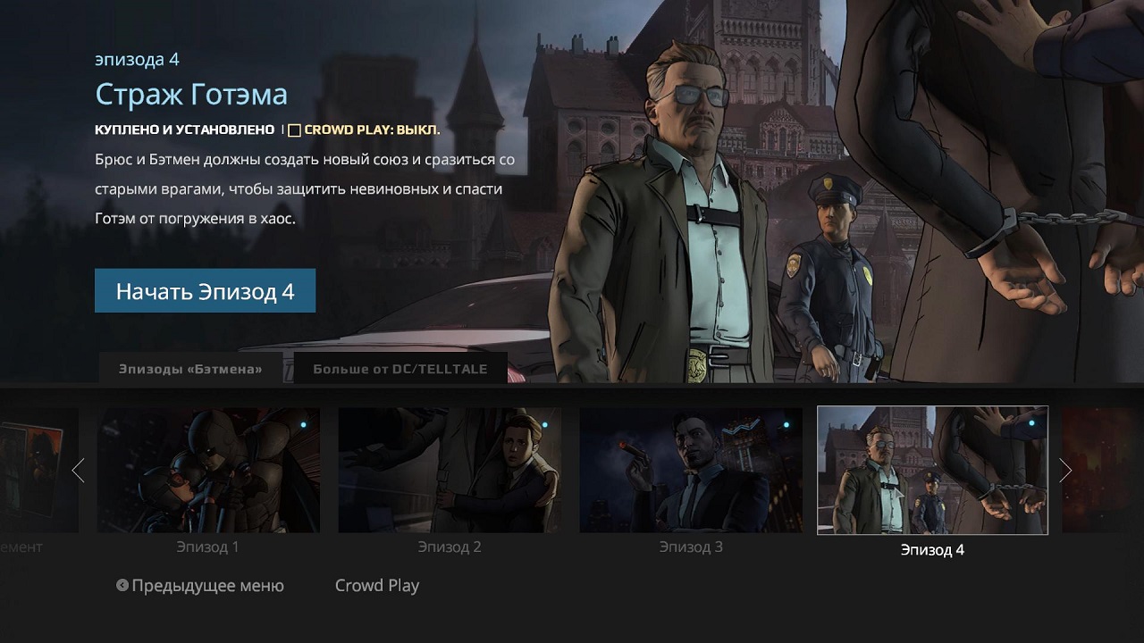 Игра Batman: The Telltale Series состоит из пяти эпизодов: