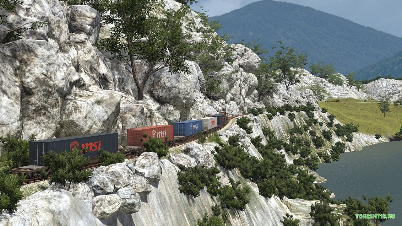 - Широчайшая железнодорожная сеть. В игровом проекте вас ждет мир размером 256 км², который заполнен лугами, полями, лесами, озерами, холмами и горами, поэтому вы можете непрерывно перемещать его по магистральной железной дороге, которая занята другими поездами.